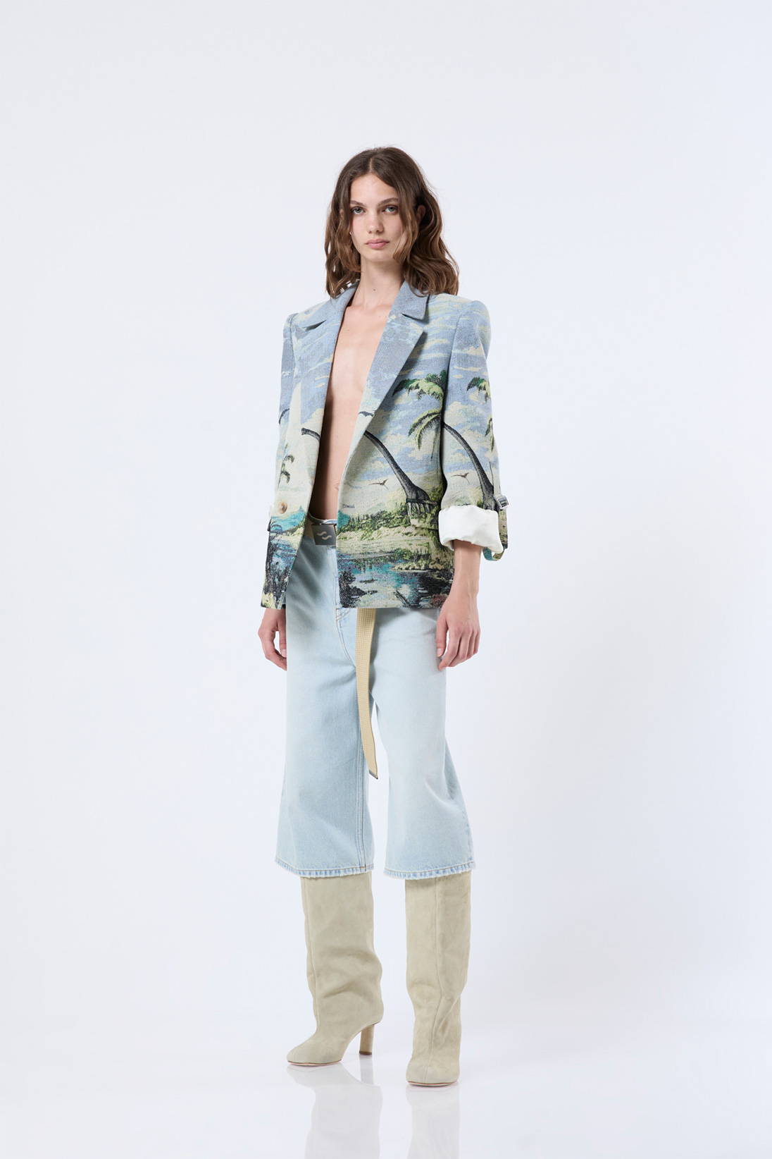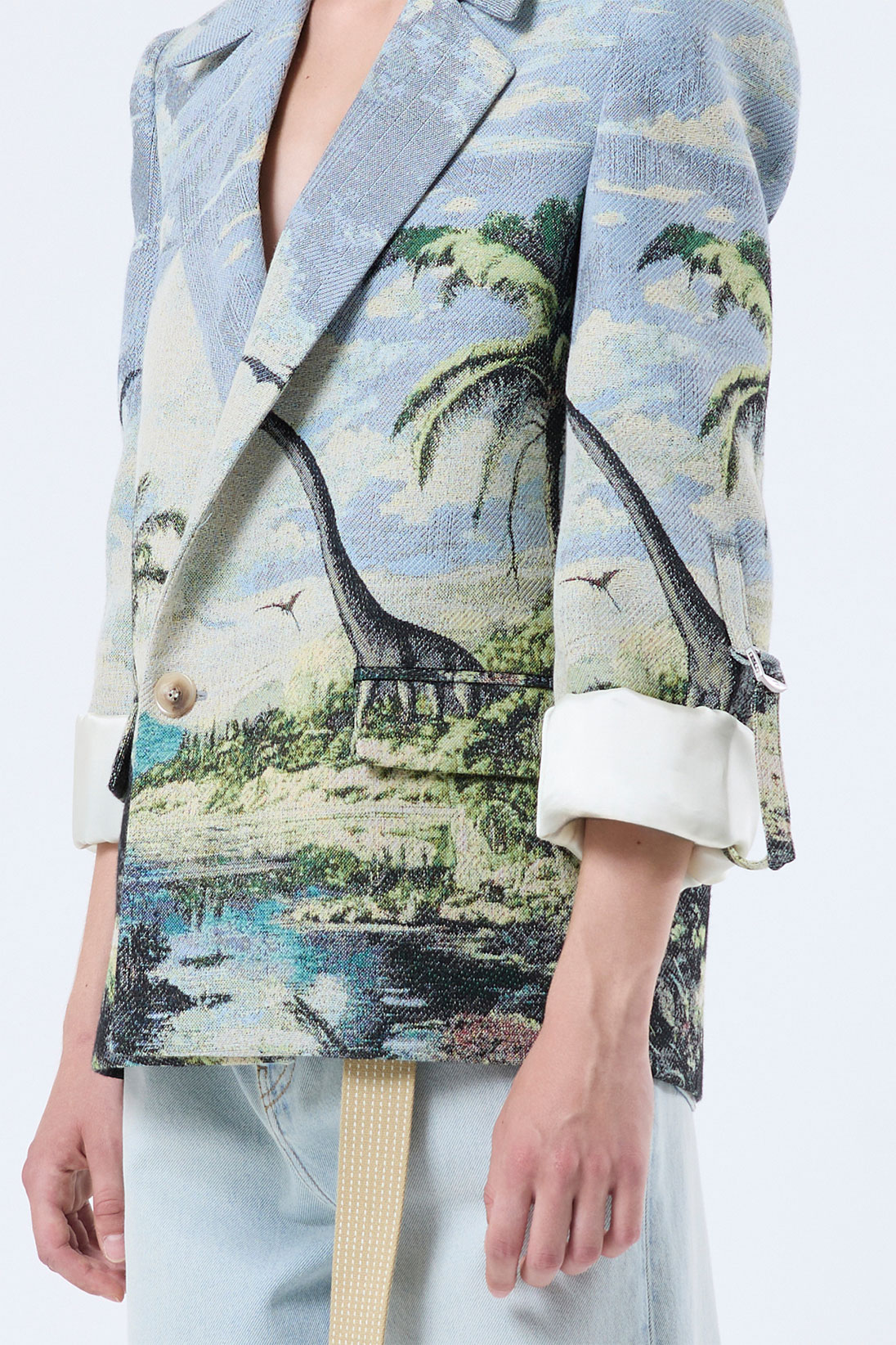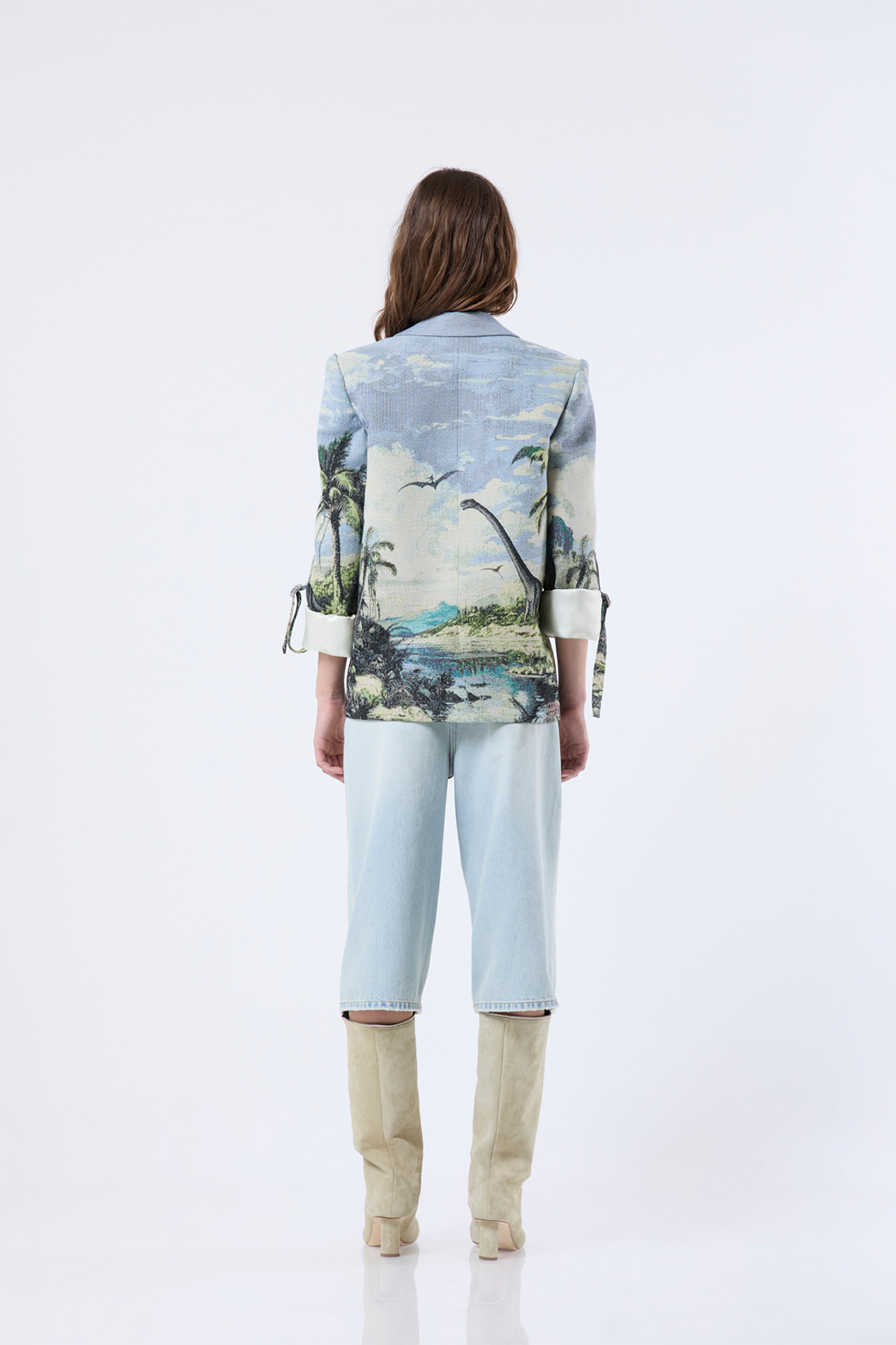Formal blazer with roll-up sleeves and adjustable drawstrings and jaquard pattern