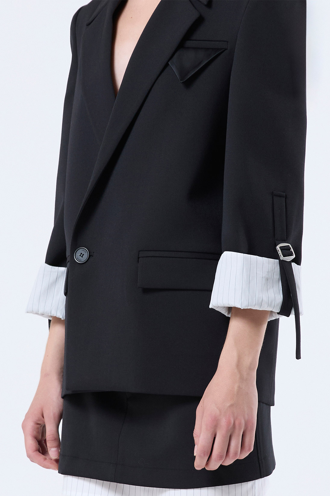 Formal blazer with roll-up sleeves and adjustable drawstrings