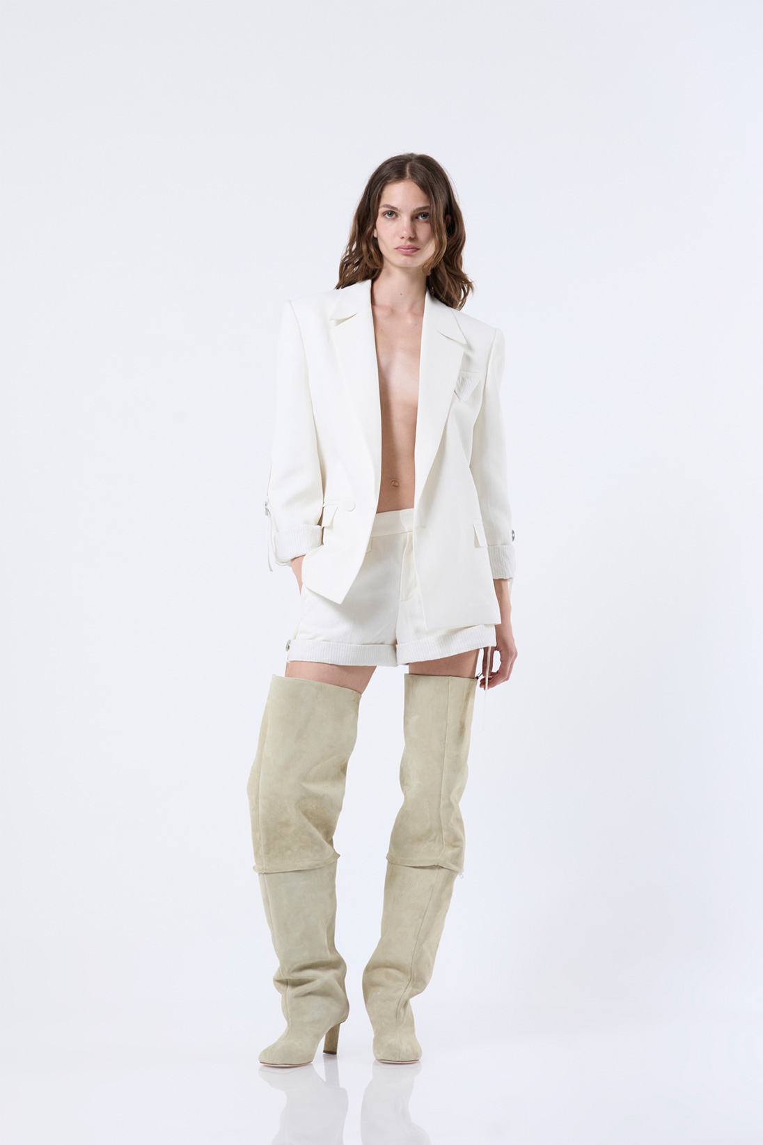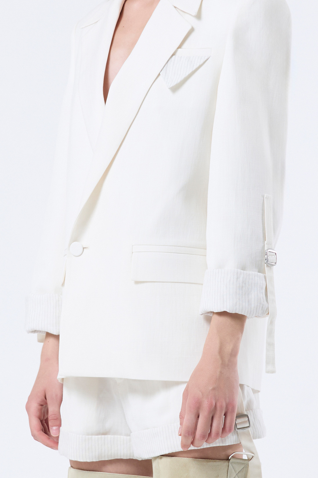 Formal blazer with roll-up sleeves and adjustable drawstrings
