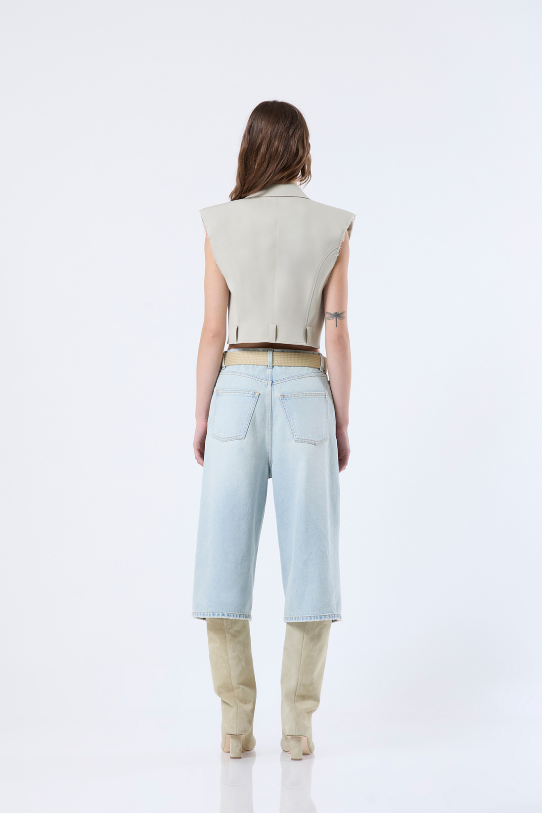 Sleeveless formal blazer with destroyed effect
