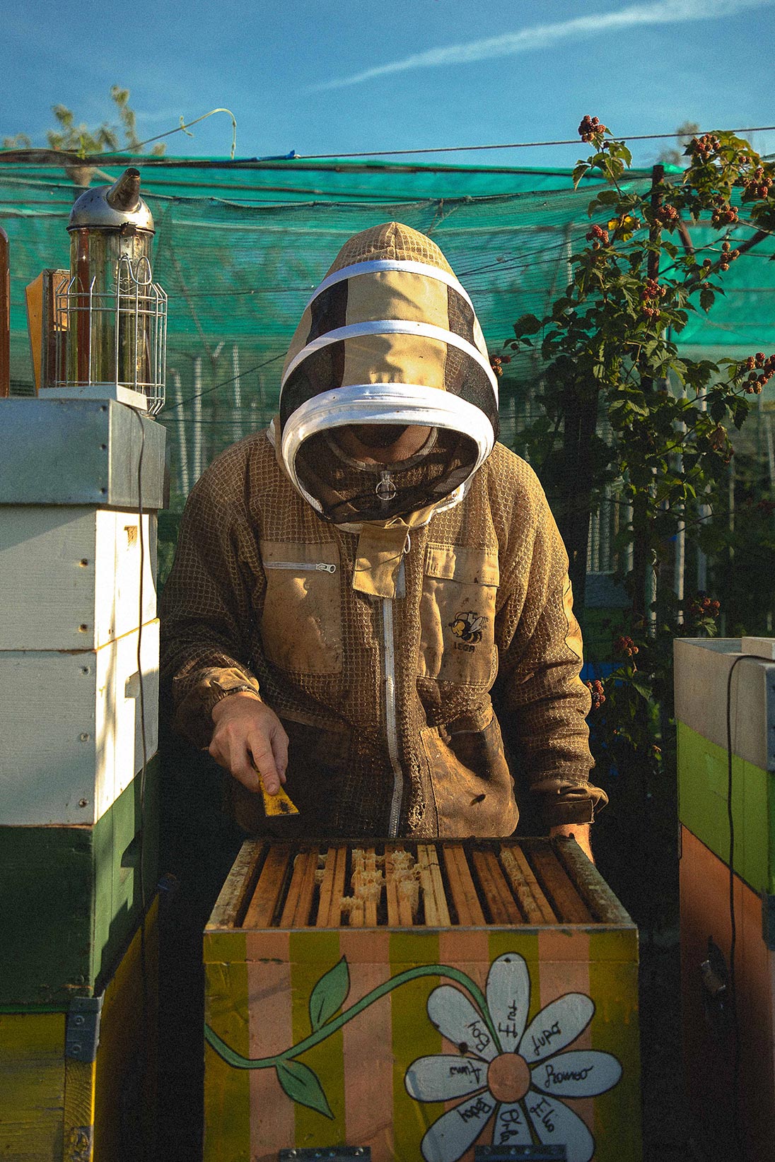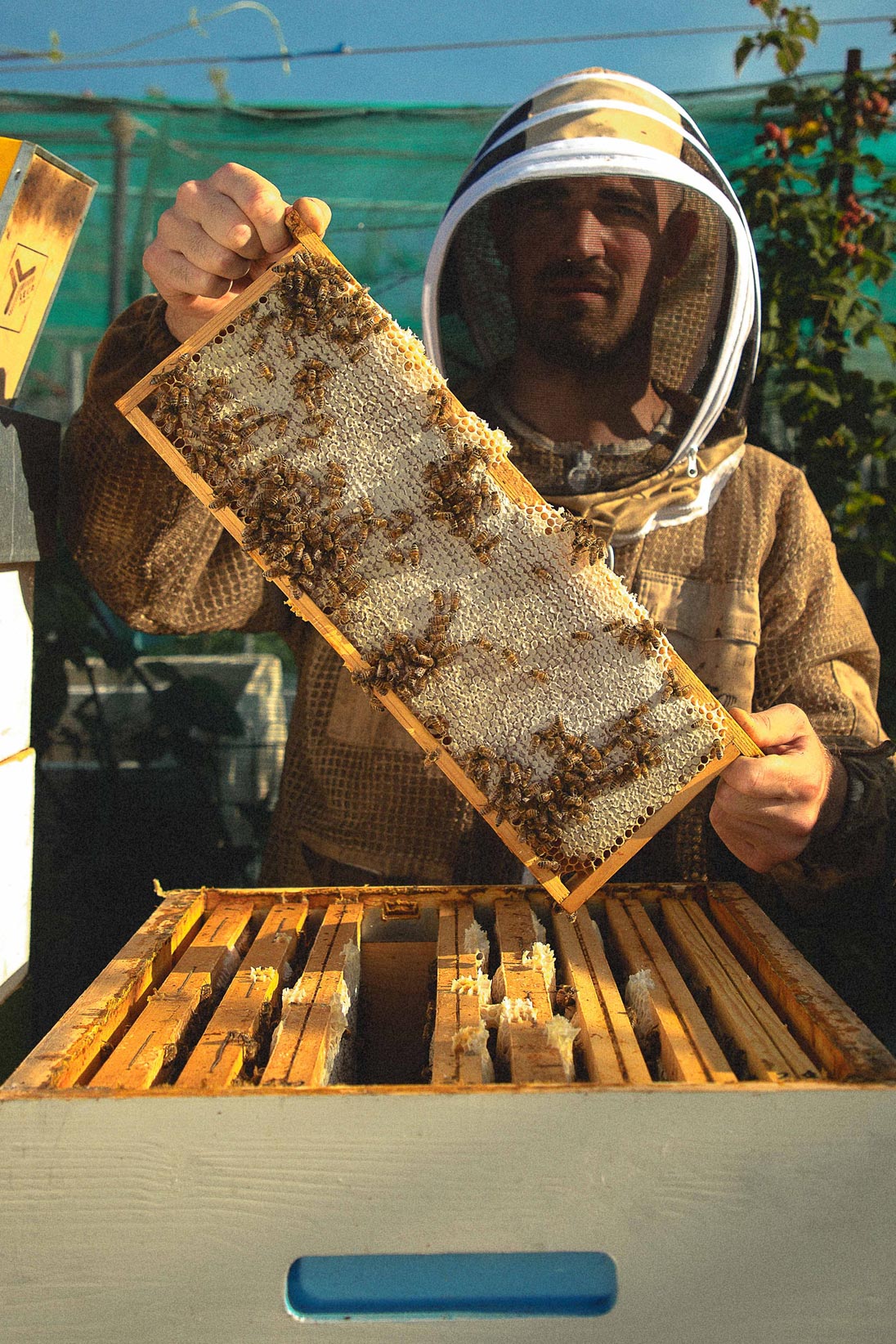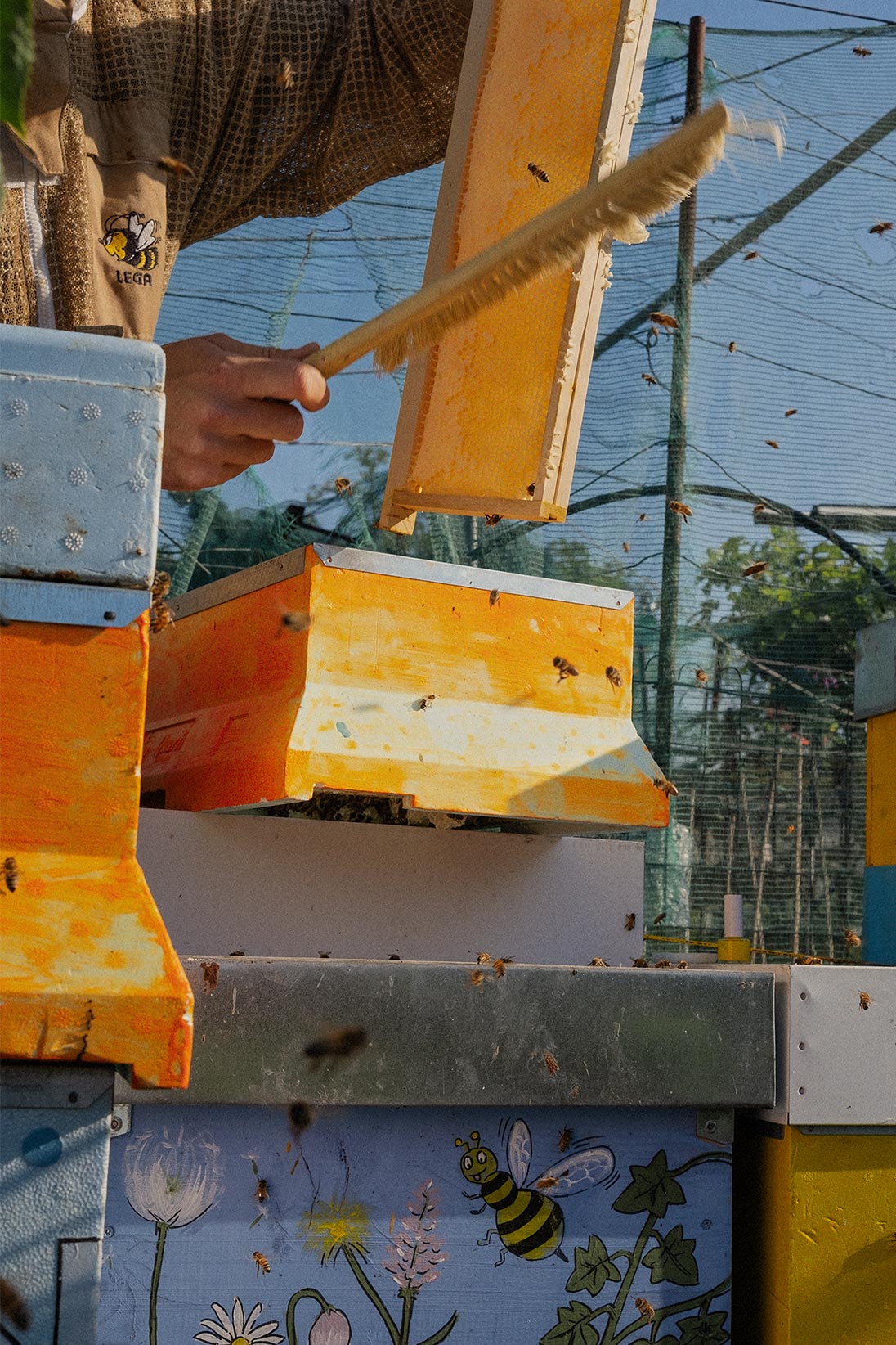 Among wildflowers and ailanthus trees, the bees of CASSHEENA work in silence, creating something raw, unfiltered, and pure—like fabric before the cut. The ailanthus honey is bold, almost exotic; the wildflower variety is softer, ever- changing, like a collection that shifts with the season.