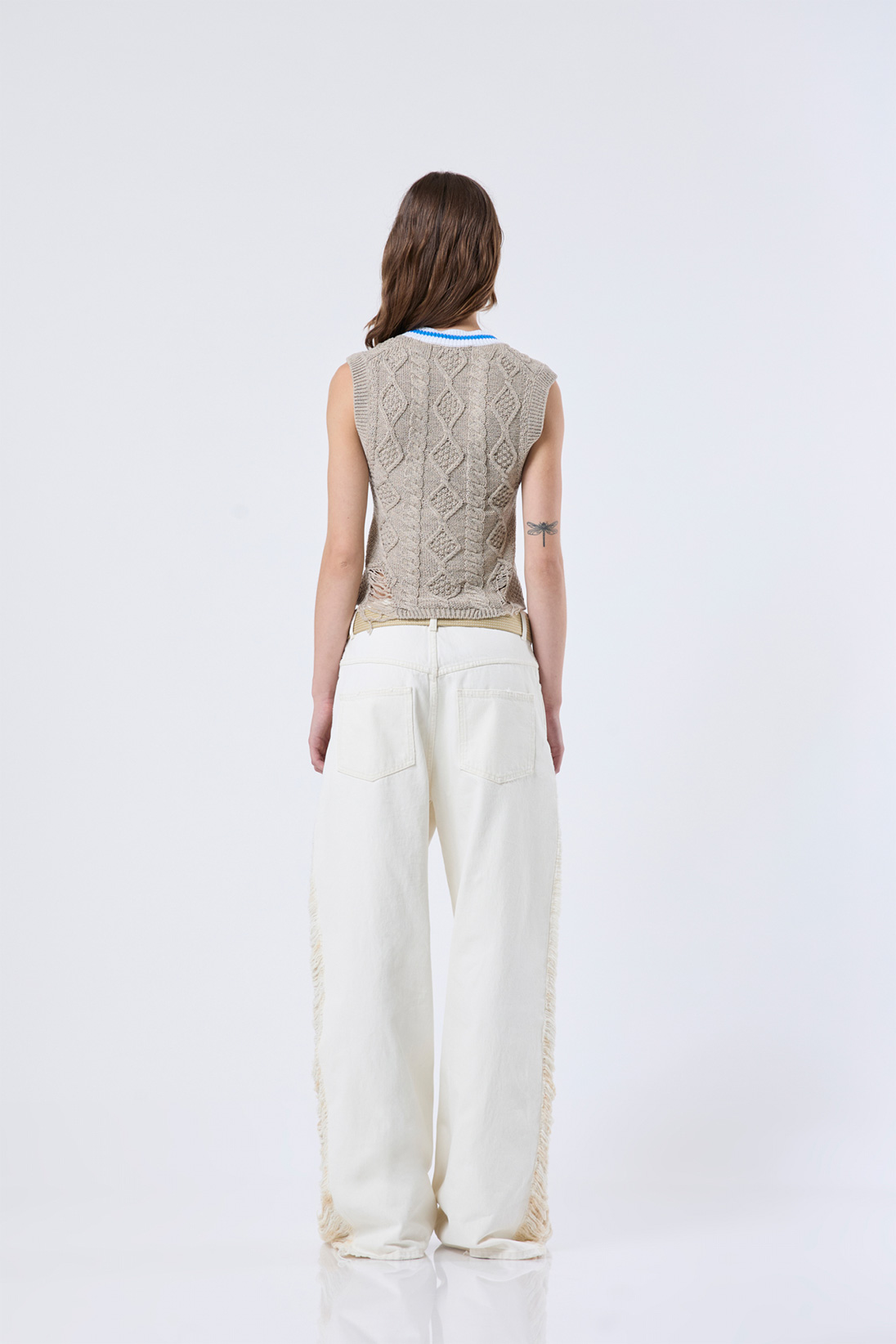 The model is 177cm tall and wears size 26