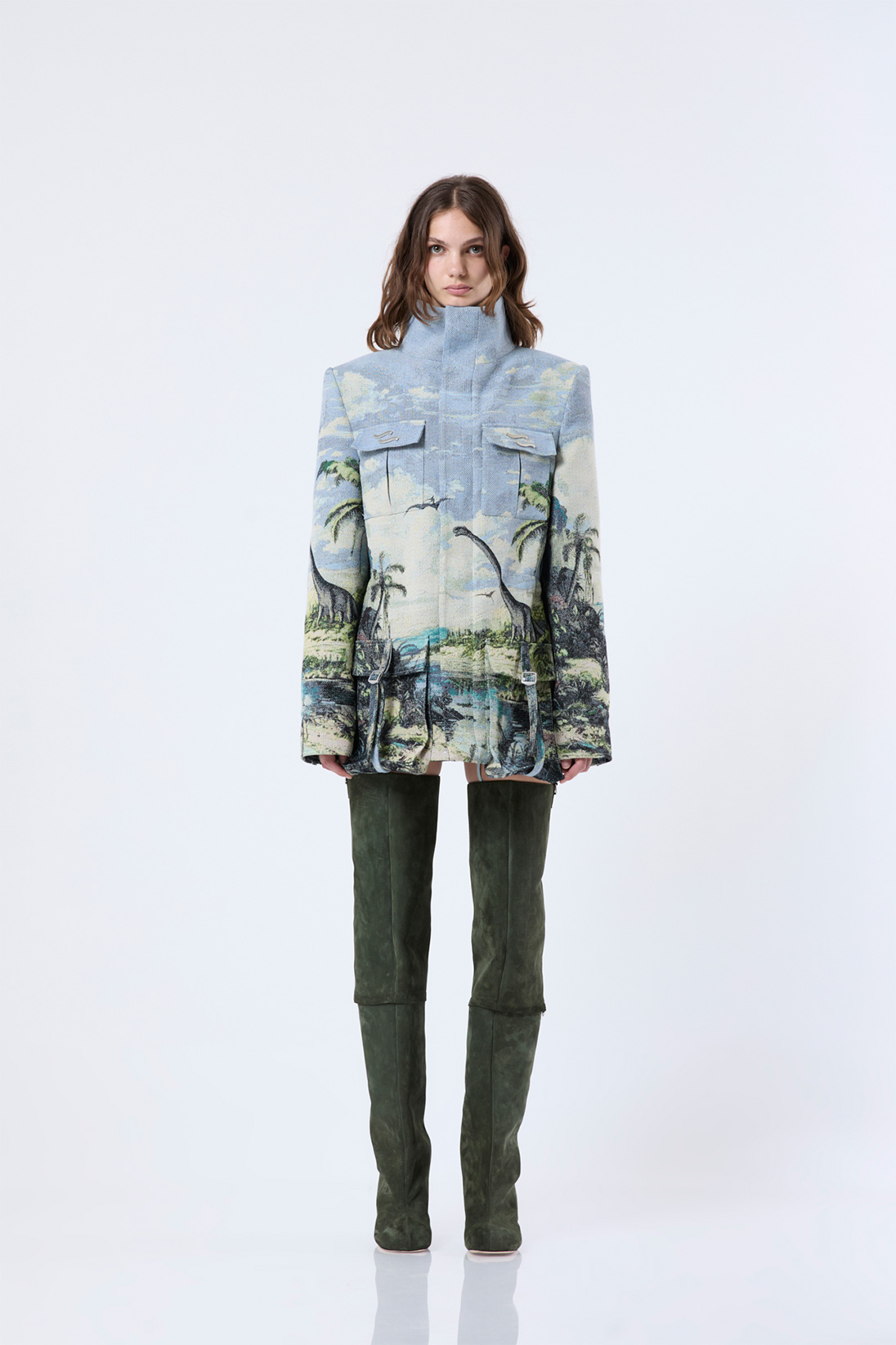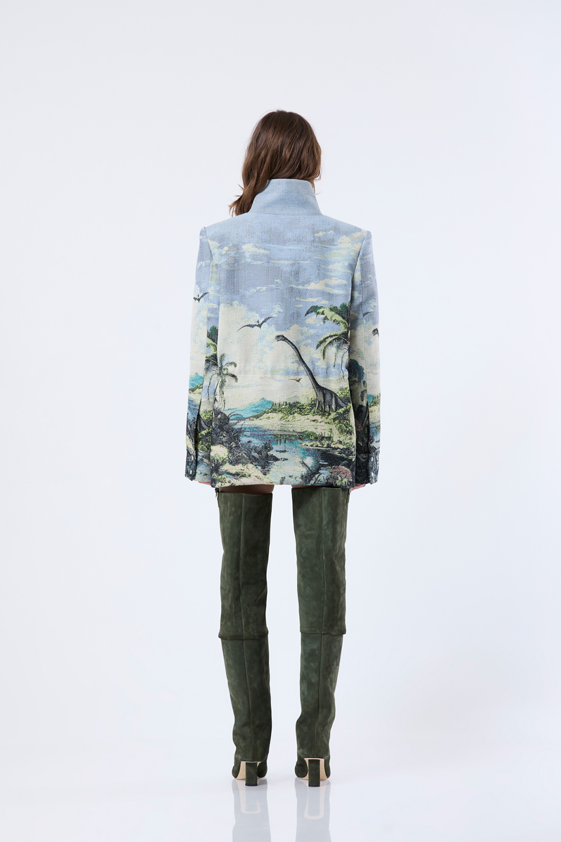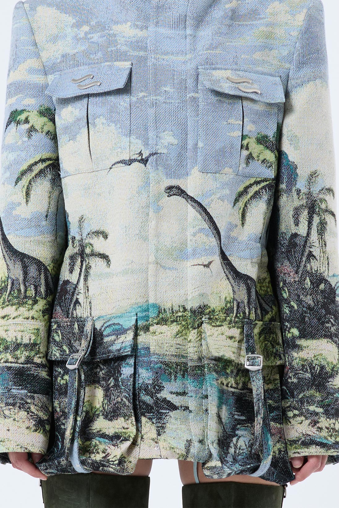 Formal safari coat with adjustable waist and jaquard pattern