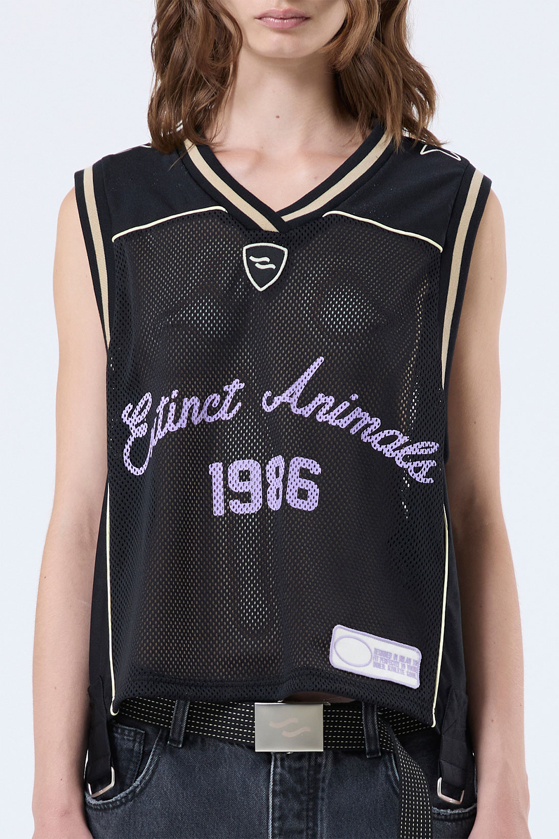 Printed basketball tank top with metallic rings